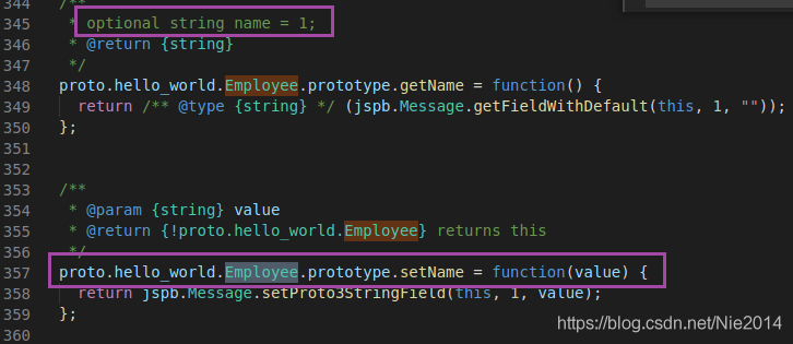 Employee及EmployeeID的参数定义在helloworld_pb.js中: