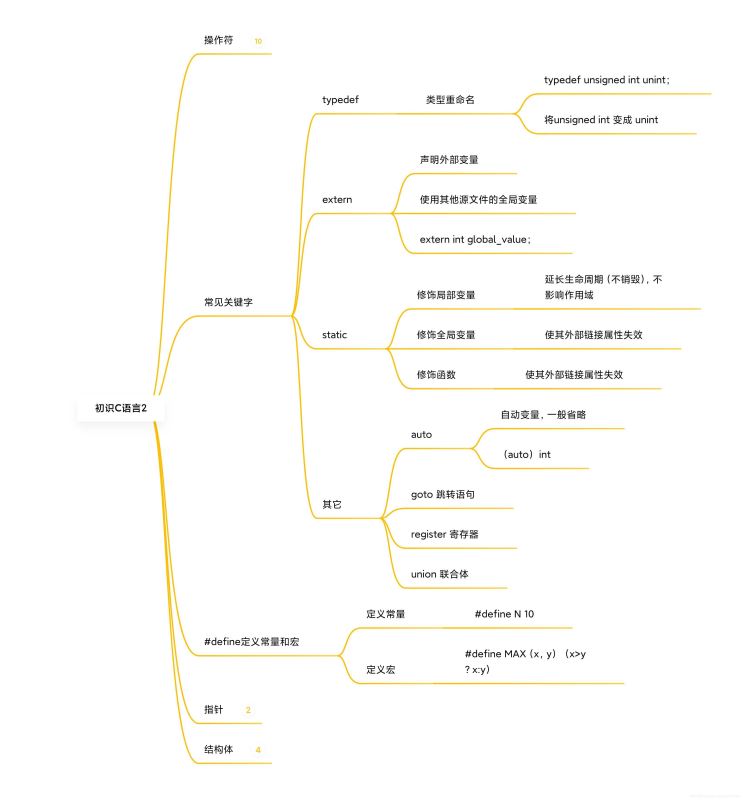 本节包括的内容有操作符,常见关键字,#define定义常量和宏,指针以及结构体。