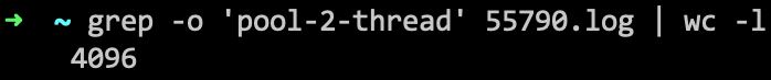 grep -o 'pool-2-thread' 55790.log | wc -l
