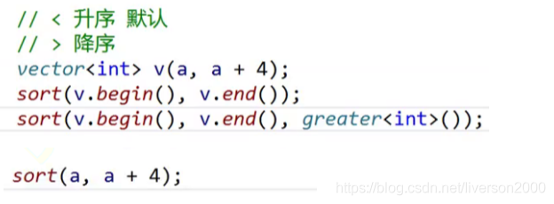 sort默认是排升序 如果想排降序需要使用functional文件中的greater()这个模板函数,我们以vector来举例。