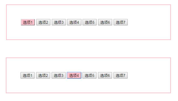 当我们点击其中一个的时候让它变成粉色,再点击另一个后除了被点击的按钮全部为原始颜色,我们应该怎样做呢