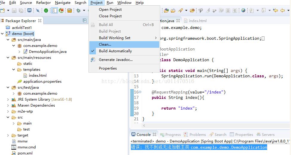 利用eclipse的maven插件,清理了了一下springboot的项目,结果再启动就找报找不到主类的错误了。
