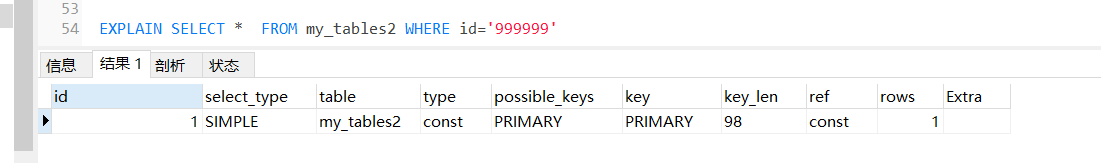 前后分析得出 使用uuid或者数字作为主键它的查询效率相差的并没有想象中的大,几乎可以忽略不记 只有key_len有些差别。