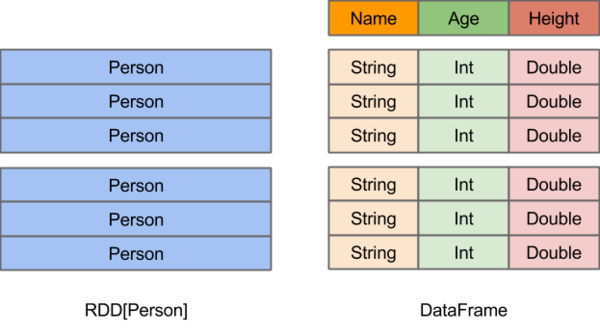 在Spark中,DataFrame是一种以RDD为基础的分布式数据集,类似于传统数据库中的二维表格。DataFrame与RDD的主要区别在于,前者带有schema元信息,即DataFrame所表示的二维表数据集的每一列都带有名称和类型。这使得Spark SQL得以洞察更多的结构信息,从而对藏于DataFrame背后的数据源以及作用于DataFrame之上的变换进行了针对性的优化,最终达到大幅提升运行时效率的目标。反观RDD,由于无从得知所存数据元素的具体内部结构,Spark Core只能在stage层面进行简单、通用的流水线优化。