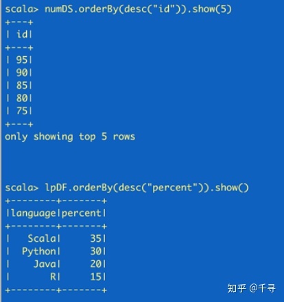 numDS.orderBy(desc("id")).show(5)