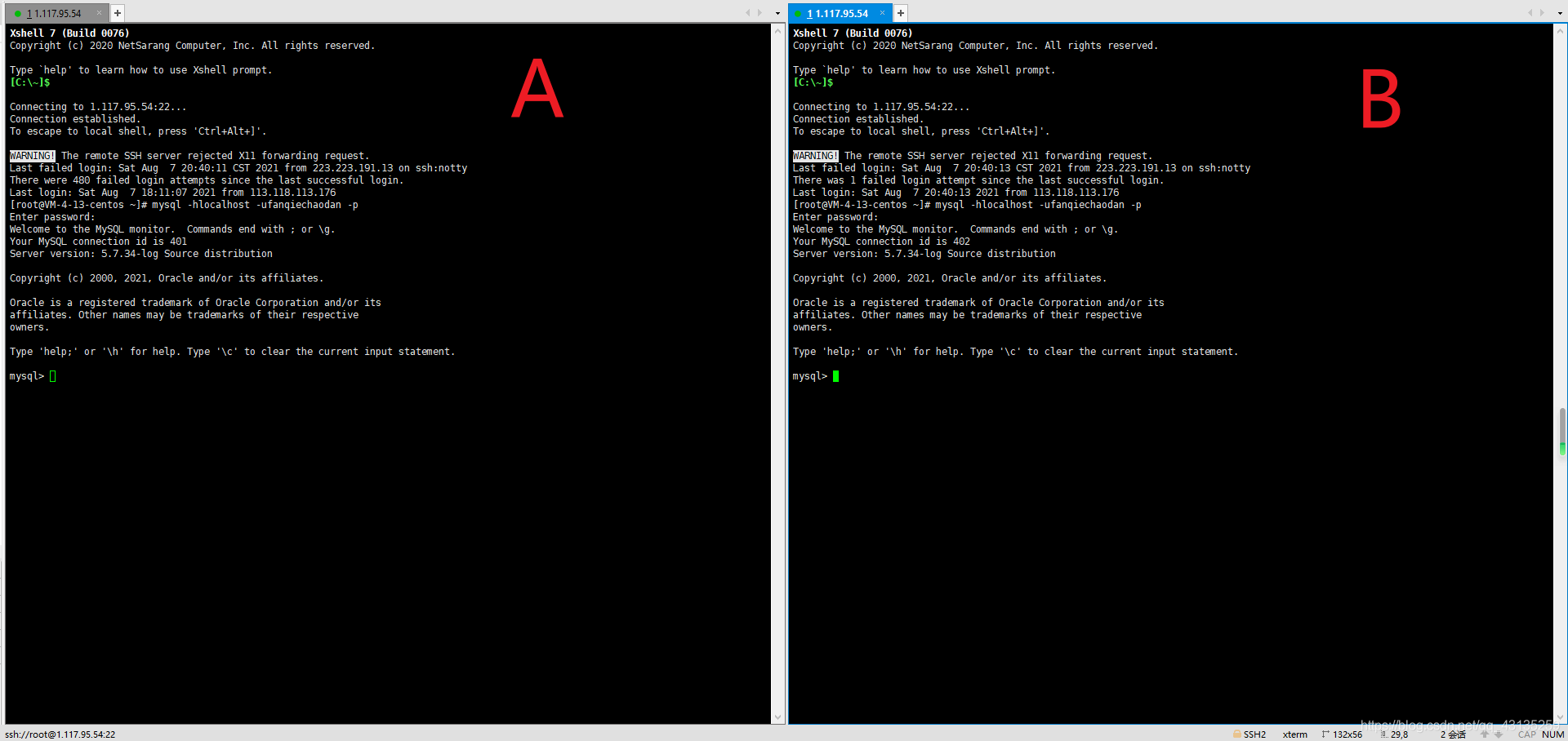 2.3 客户端A只做查询,客户端B对id = 1的记录做修改;