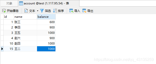 3.2 在客户端A执行update account set balance = 1000 where name = ‘李四';