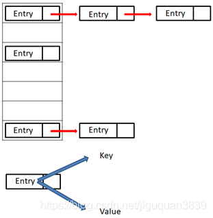 每次初始化HashMap都会构造一个table数组,而table数组的元素为Entry节点,它里面包含了键key,值value,下一个节点next,以及hash值。
