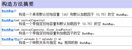 查看hashMap的API发现,它有4个构造函数: