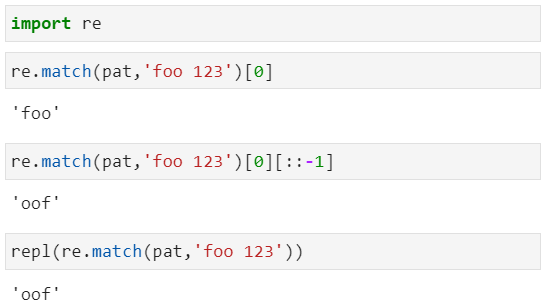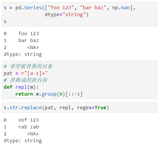 此外,我们还可以正则表达式替换,比如下面这个例子中我们实现的是对文本数据中英文部分进行倒序替换: