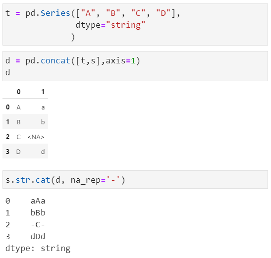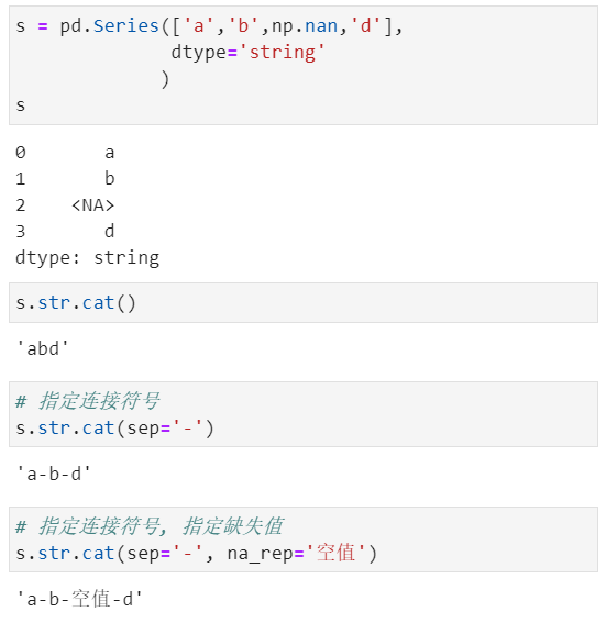 比如,将一个序列的内容进行拼接,默认情况下会忽略缺失值,我们亦可指定缺失值