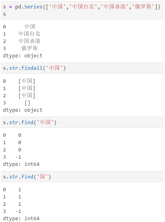 文本查询,str.findall()返回查询到的值,str.find()返回匹配到的结果所在的位置(-1表示不存在)
