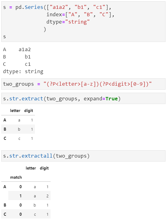 我们在日常中经常遇到需要提取某序列文本中特定的字符串,这个时候采用str.extract()方法就可以很好的进行处理,它是用正则表达式将文本中满足要求的数据提取出来形成单独的列。