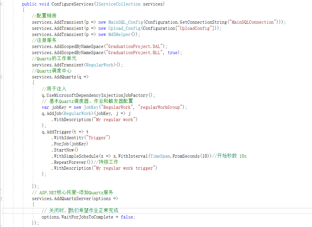 //Quartz的工作单元 services.AddTransient<RegularWork>();