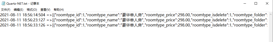 这时候我们启动项目,定期工作开始执行。这时候的注入是有效的,查询数据后结果打印在F盘下的Quartz-NET.txt文件内(如下图)。