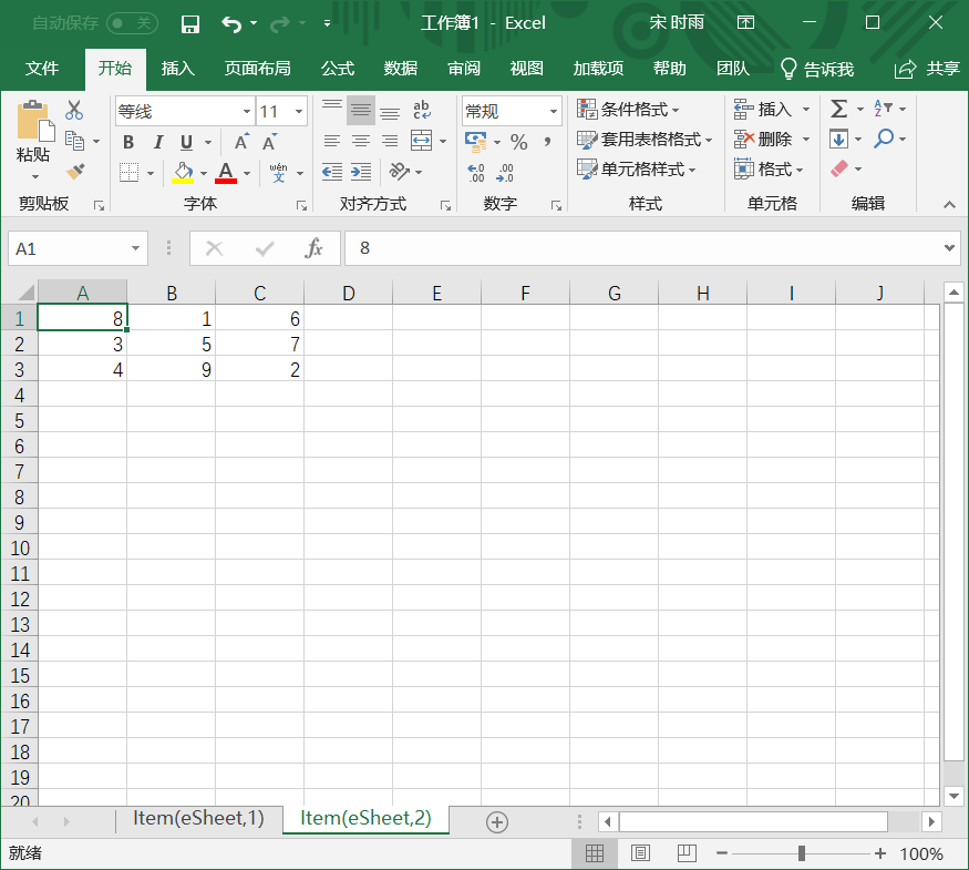 eSheet2.Range('A1:C3').Font.Name = '华文行楷';