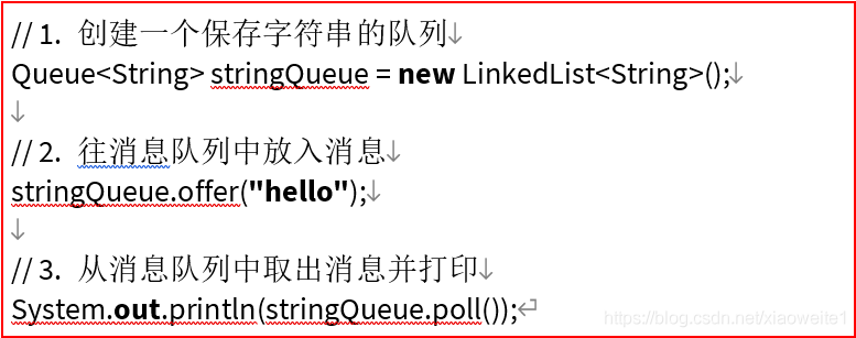 消息队列,英文名:Message Queue,经常缩写为MQ。从字面上来理解,消息队列是一种用来存储消息的队列 。来看一下下面的代码