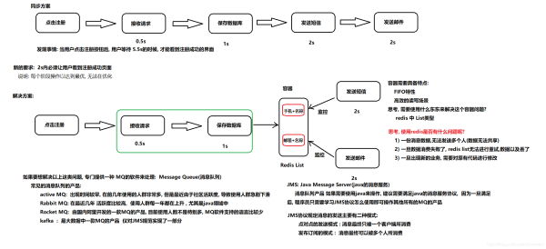 具体场景:用户为了使用某个应用,进行注册,系统需要发送注册邮件并验证短信。