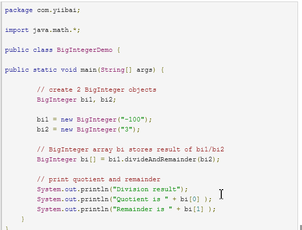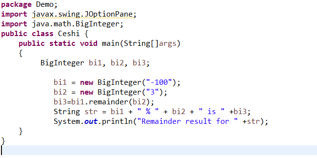 System.out.println("两数相除,整除结果为:" + resBigIntegers[0] +