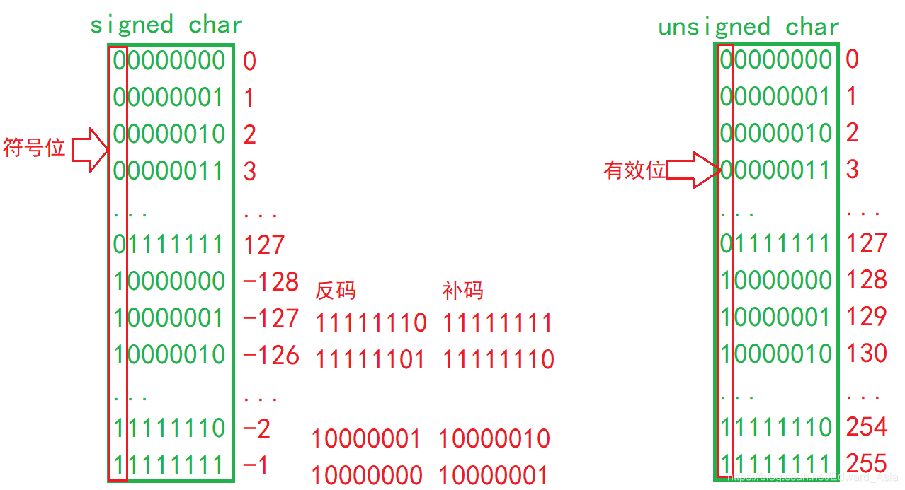 ps:char类型有无符号取决于编译器的类型 ,short,int,long均表示为有符号,前面加unsigned才表示为无符号