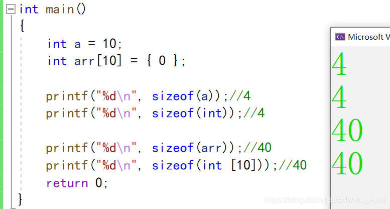 printf("%d\n", sizeof(int [10]));//40