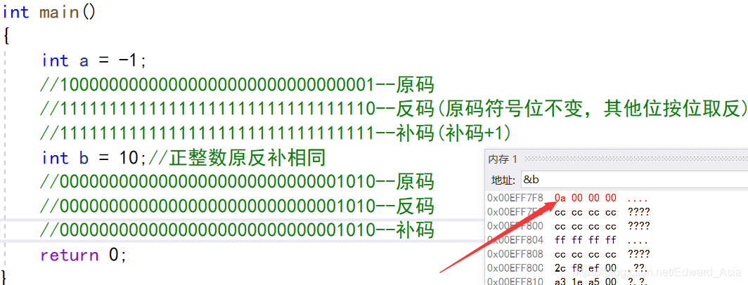 int b = 10;//正整数原反补相同