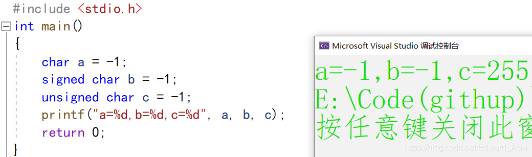 并且我们可以推算出有符号char类型所能表示的范围是-128——127;无符号char类型所能表示的范围是0——255。同理也可以推算出其他类型的范围。