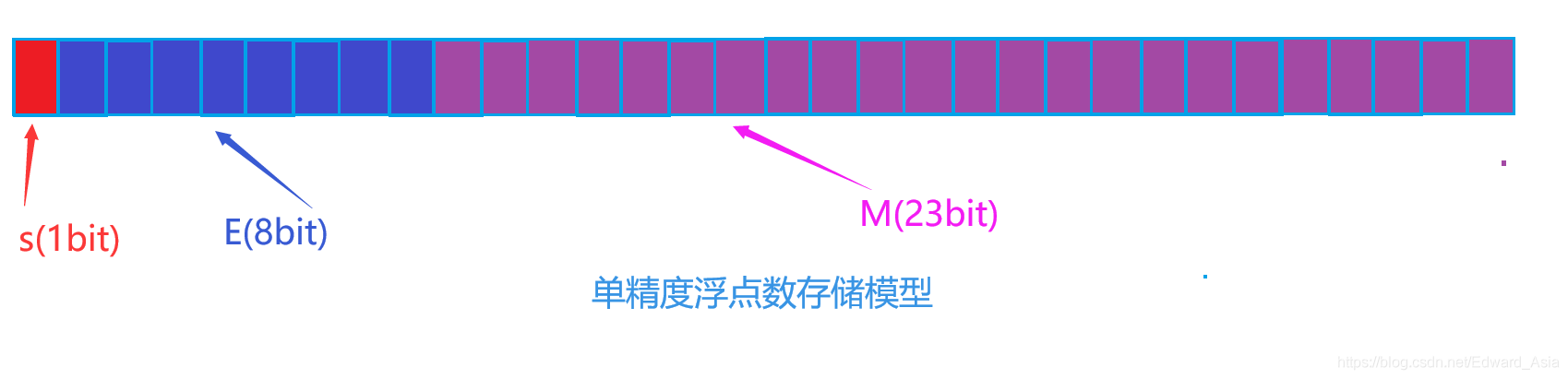 IEEE 754规定: 对于32位的浮点数,最高的1位是符号位s,接着的8位是指数E,剩下的23位为有效数字M。