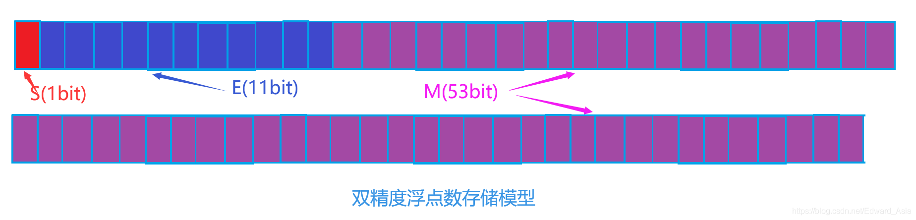 对于64位的浮点数,最高的1位是符号位S,接着的11位是指数E,剩下的52位为有效数字M。