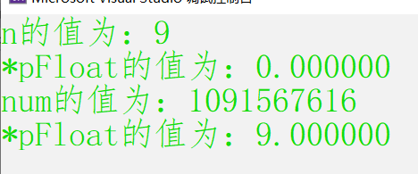 printf("num的值为:%d\n", n);//这里打印的n是以9.0在内存中的二进制位以整形打印,所以结果不是9.0