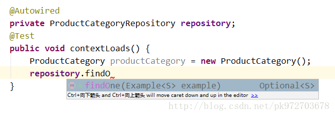 开发SpringBoot的DAO层之后,去测试的时候,发现findOne()这个方法找不到了,查看了对应的表字段名和实体类的属性都一致