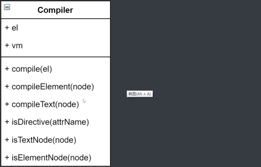 el为构造函数传过来的options.el,vm是vue的实例,下面都是vm的方法,对DOM进行操作。compile方法内部遍历dom对象的所有节点,并且