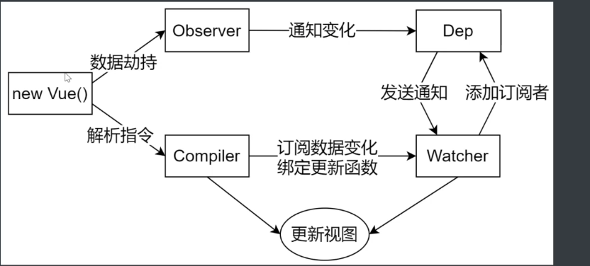 Dep就是收集于该属性的watcher对象,使用setter方法去通知依赖,当属性发生变化时调用nodify方法去发送通知,然后调用watcher对象
