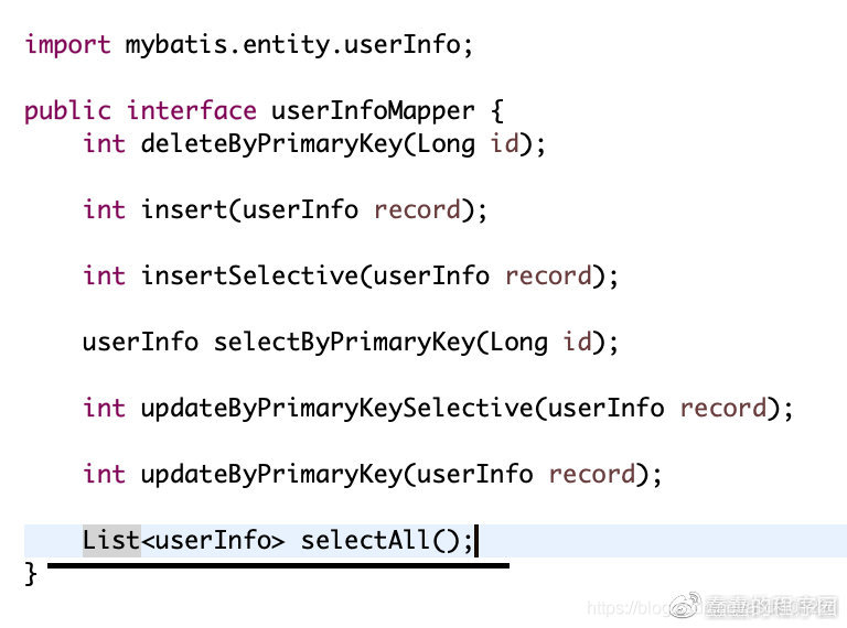 int insert(BUser record); //插入数据(插入一条数据)