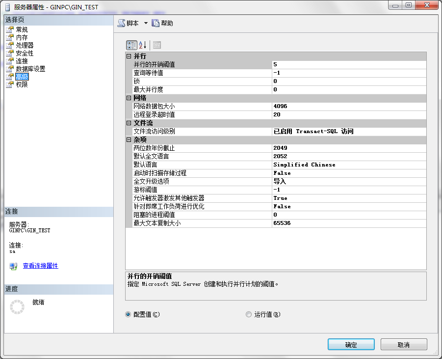 2、打开SSMS 在实例配置 ,这样就打开了FileStream的选项