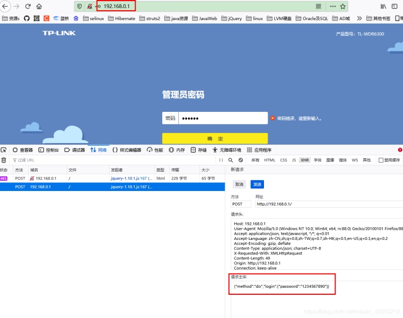 通过循环提交路由器登录密码,通过工具post循环提交路由器的登录密码。