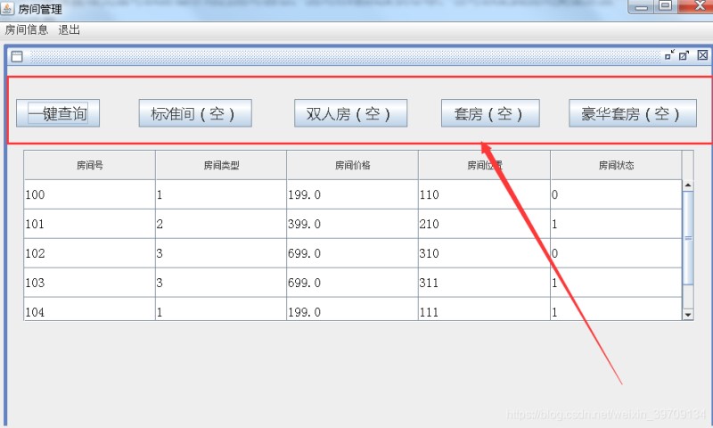 房间信息管理管理页面可以查看所有的房间信息、房间标准以及状态等、也可以更具房间类型来查询房间信息。