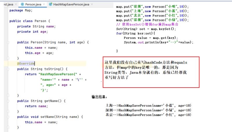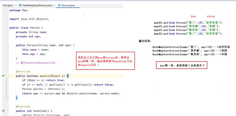 Person就必须类重写hashCode方法和equals方法,来保证key唯一
