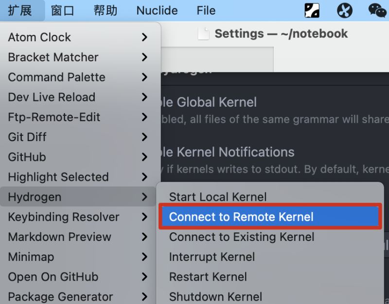 连接远程的Jupyter只需要配置一下Hydrogen设置里面的Kernel Gateways,填上如下内容即可