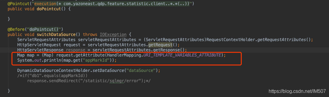 最近项目中需要对controller传入的应用标识(appMarkId)进行校验,appMarkId@PathVariable传入到url模版中的,这里用到了aop统一拦截处理,但是在拦截的过程中发现request获取不到该参数,随后进行了研究。