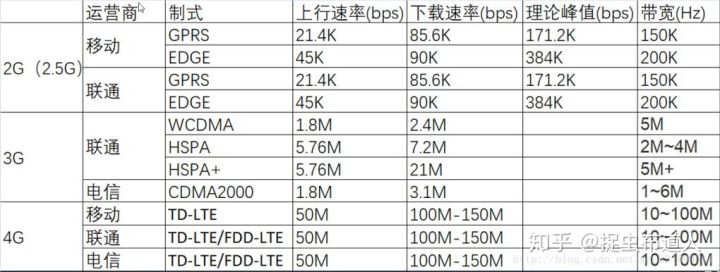 下面是常见网络制式的上行、下载速度表,可以参考。