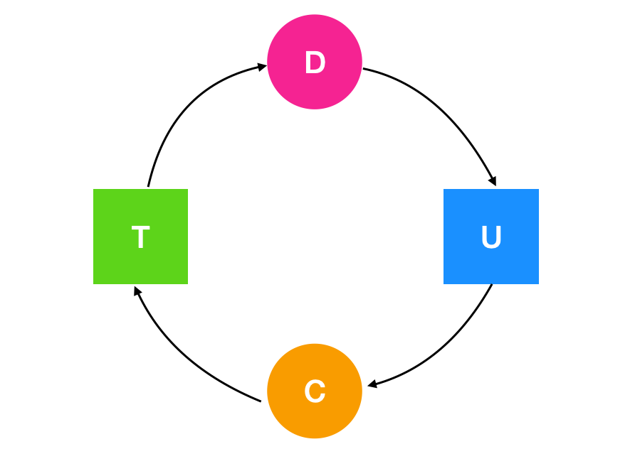 这是一个死锁的过程,进程 C 等待资源 T 的释放,资源 T 却已经被进程 D 占用,进程 D 等待请求占用资源 U ,资源 U 却已经被线程 C 占用,从而形成环。