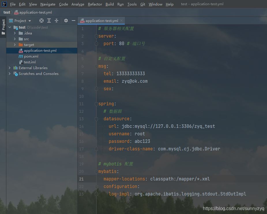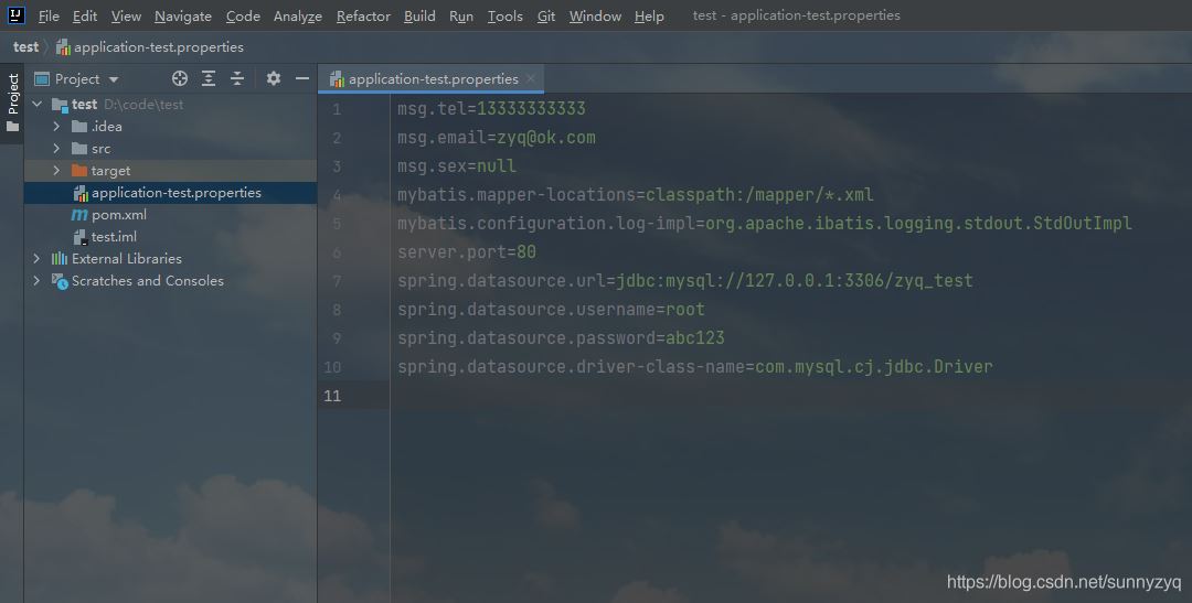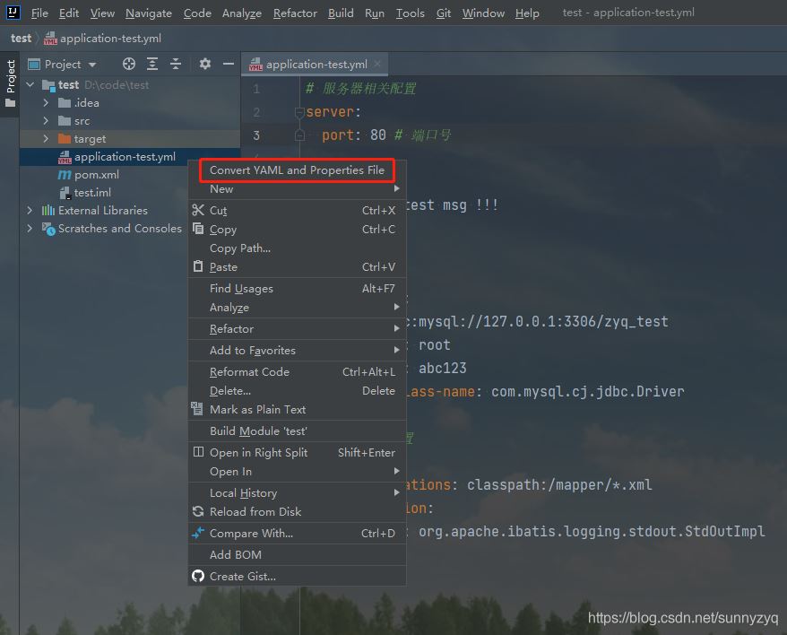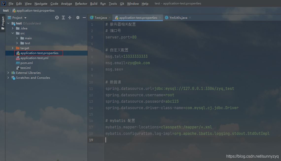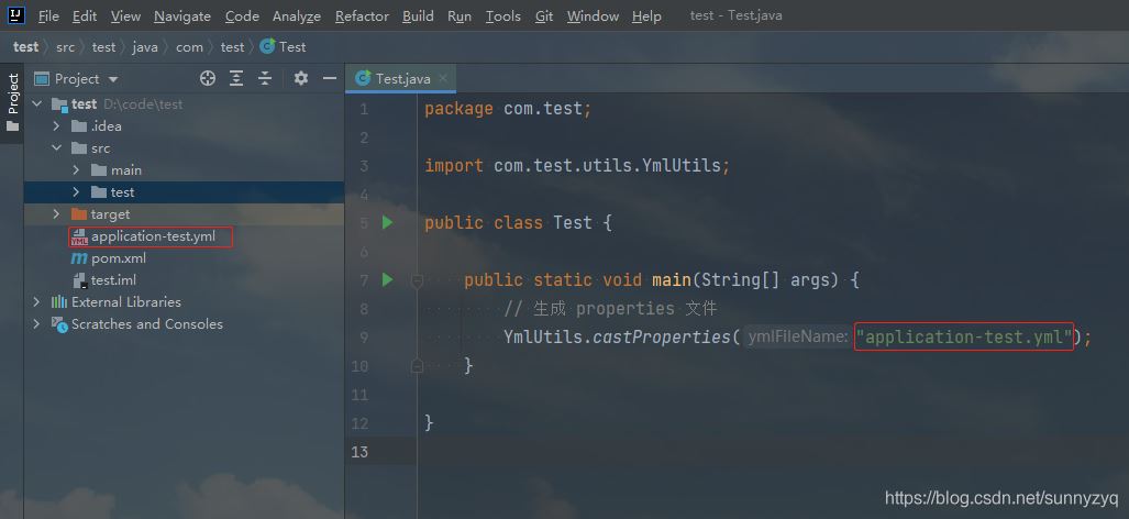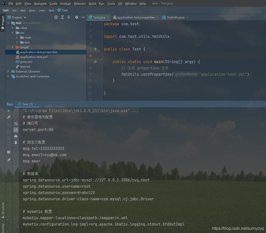 YmlUtils.castProperties("application-test.yml");