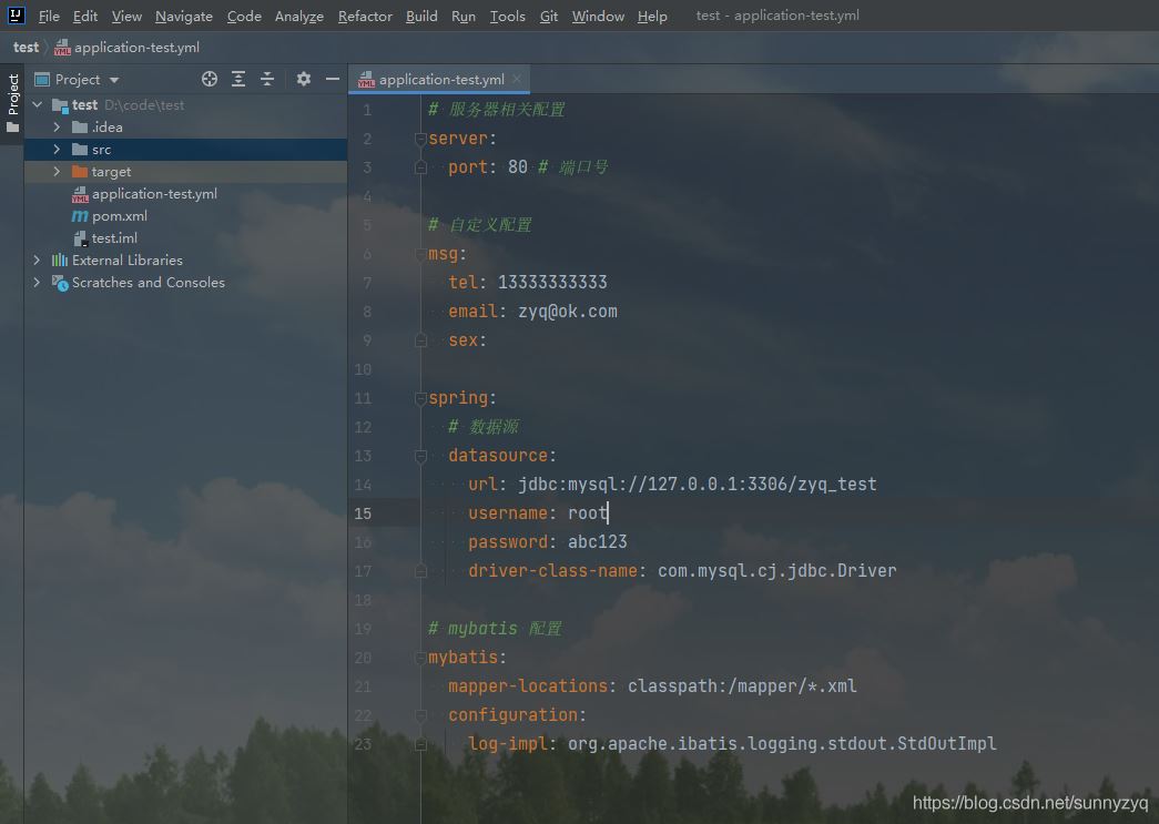比如,现在我们有如下的 yml 配置文件: