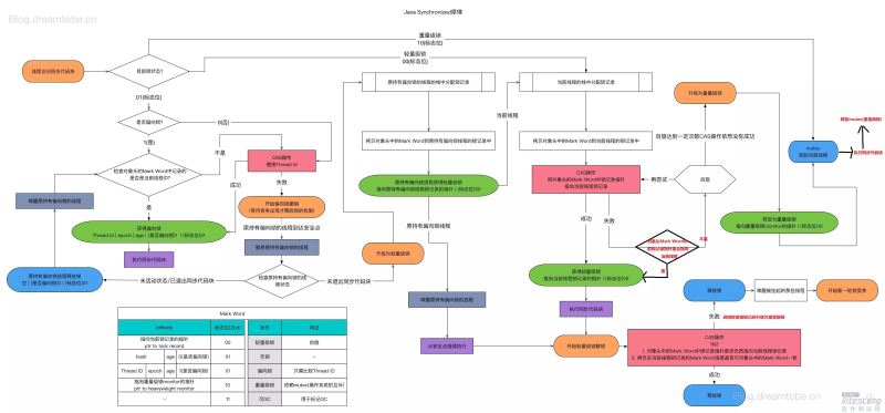 锁的状态总共有四种,无锁状态、偏向锁、轻量级锁和重量级锁。随着锁的竞争,锁可以从偏向锁升级到轻量级锁,再升级的重量级锁,但是锁的升级是单向的,只能从低到高升级,不会出现锁的降级。重量级锁基于从操作系统的互斥量实现的,而偏向锁与轻量级锁不同,他们是通过 CAS 并配合 Mark Word 一起实现的。