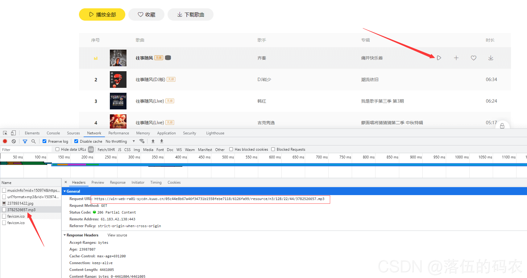 果然是经过触发播放按钮后,服务器传给咱们客户端的。(ajax)