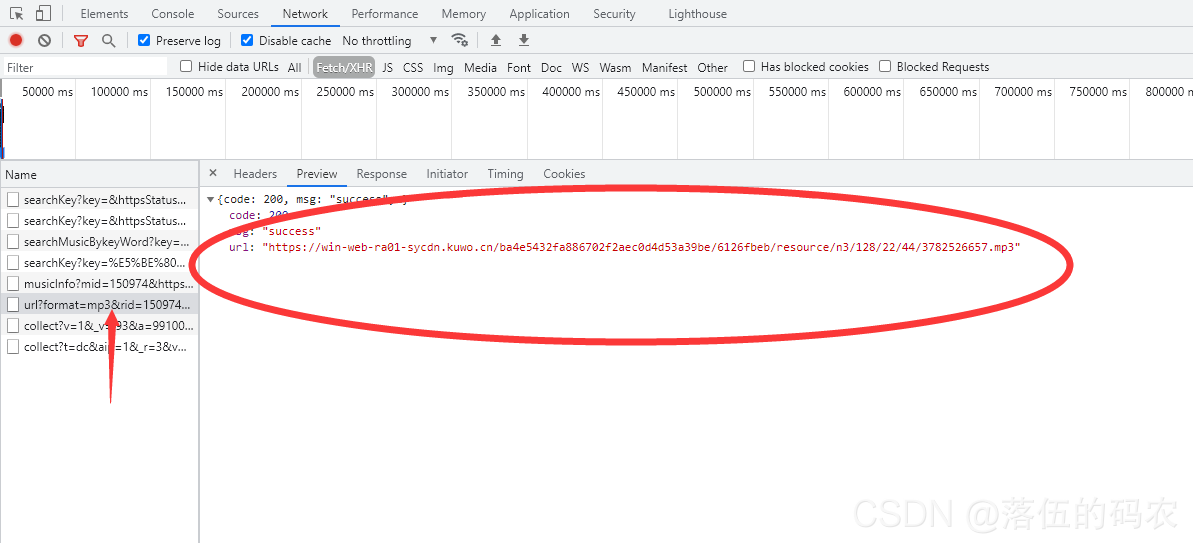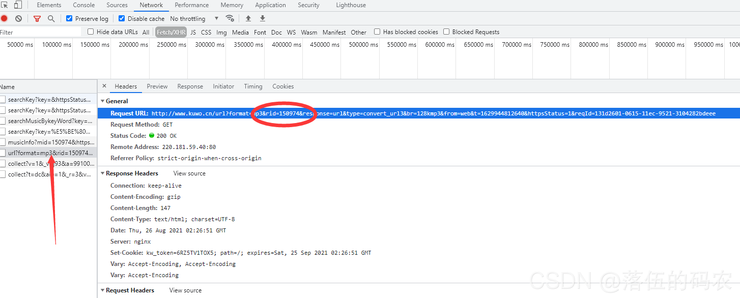 然后传递rid进行这个包的请求获取到音乐文件地址