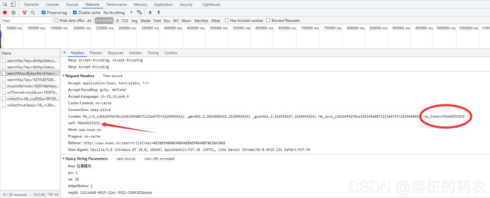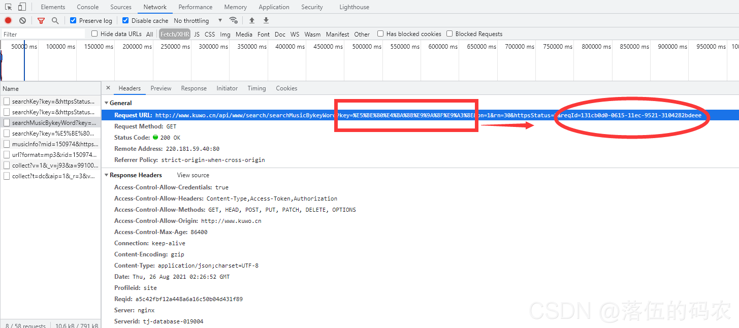 而pn=1意思就是第一页嘛,30就是这一页总共30条音乐数据咯,1代表状态码请求成功,而最后reqId这个值如何获取呢?