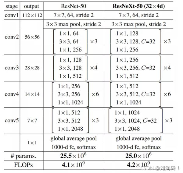 对比下,ResNet50和ResNeXt-50的网络结构图如下: