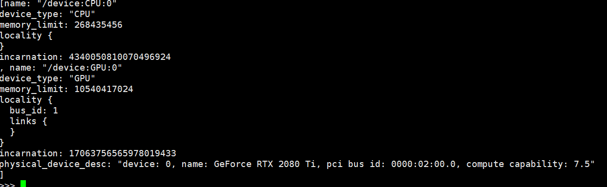 >>> from tensorflow.python.client import device_lib >>> device_lib.list_local_devices()